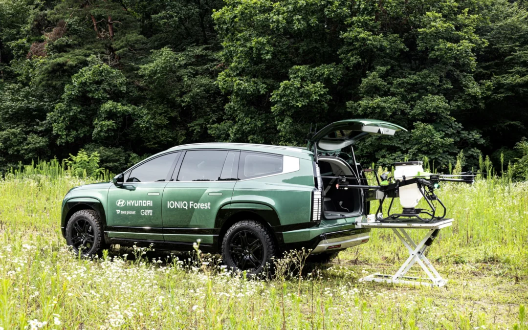 La recién desarrollada estación de drones de bolas de semillas IONIQ 9 es un vehículo especialmente diseñado, basado en el SUV eléctrico insignia de Hyundai Motor, el IONIQ 9, y desarrollado en colaboración con Guru E&T, una startup especializada en soluciones y tecnologías de reforestación. Está equipado para facilitar la siembra, monitoreo y restauración de zonas forestales degradadas.