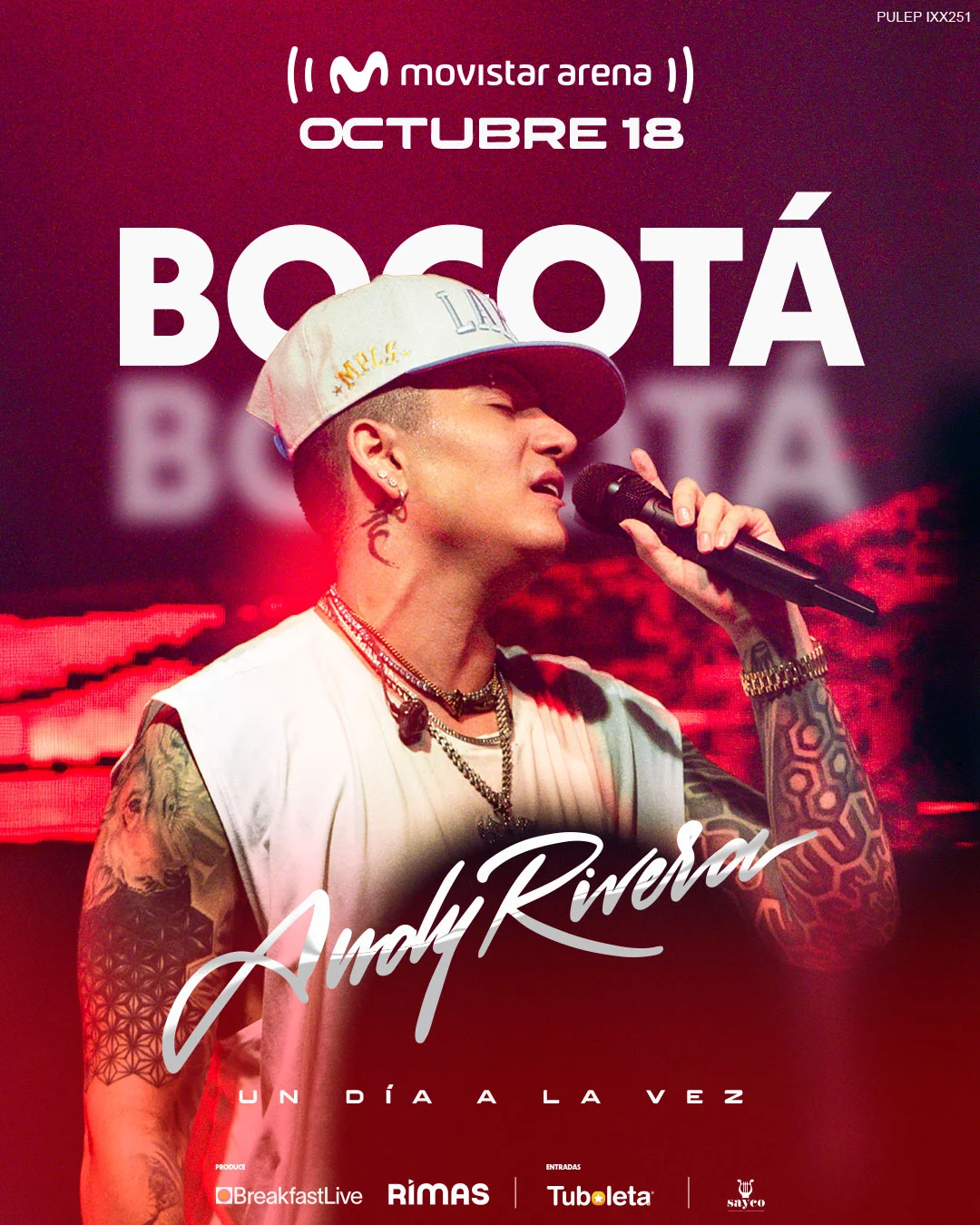 Bogotá continúa posicionándose como epicentro musical, acogiendo a uno de sus exponentes más representativos. Andy Rivera, hijo de la leyenda de la música popular Jhonny Rivera, ha dejado una marca imborrable en el género urbano colombiano desde sus inicios, con hits como “Salgamos”, “Monumento” y “Espina de Rosa”. Además, canciones como “Te Pintaron Pajaritos”, lo catapultaron al reconocimiento nacional y le valieron premios Nuestra Tierra como Mejor Artista Nuevo y Canción Urbana, y colaboraciones que alcanzaron certificaciones de oro y platino (por “Alguien Me Gusta” junto a Jessi Uribe), Andy Rivera se ha consolidado como una figura influyente en la escena.