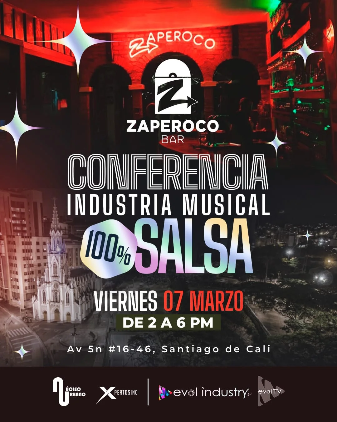 Este viernes 7 de marzo, Zaperoco Bar en Cali se convertirá en el epicentro de la industria musical con la Primera Gran Conferencia de Industria Musical Salsa 100%. De 2:00 p.m. a 6:00 p.m., artistas, productores y expertos del sector se reunirán para compartir conocimientos y estrategias que fortalecerán el desarrollo de la salsa y otros géneros musicales.